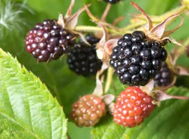 Brombeeren Arten sind bei uns heimisch und sind gegenüber dem Standort relativ anspruchslos. Die über unterirdische Ausläufer ausbreitungsfreudigen Brombeeren klettern aufgrund ihrer Stacheln bis zu 3m hoch und können andere Pflanzen in ihrem Wuchs beeinträchtigen. Es gibt zahlreiche stachellose und bestachelte Brombeerensorten. Zur Erleichterung der Ernte, einem grösseren Ertrag und einer besseren Fruchtqualität sollte die Brombeere regelmässig geschnitten werden. Der Schnitt direkt nach der Ernte reduziert die Überwinterungsmöglichkeiten der Brombeer-Milbe (Acalitus essigi). Die Brombeere wird häufig von der Kirschessigfliege (Drosophila suzukii) befallen. Durch frühe Sorten, Auslichten der Triebe und einen sonnigen warmen Standort kann der Befall reduziert werden. Die saftigen schwarzen Früchte sind reich an Vitaminen. Die aromatischen Blätter eignen sich als Tee und helfen bei leichtem Durchfall oder Entzündungen des Mund- und Rachenraums.