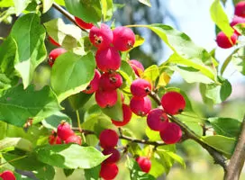 Der aus China stammende Kirsch-Apfel wächst meist als Baum mit gewölbter und überhängender Baumkrone oder als grosser Strauch. Der Kirsch-Apfel zeigt eine besonders üppige Blüte mit zahlreichen 4 cm grossen, nektarreichen, weissen Blüten. Aus diesem Grund wird er gerne als Zierpflanze verwendet. Die kugelige, etwa 1 cm grosse, gelb bis rote Frucht besitzt festes Fruchtfleisch mit süss-saurem bis bitteren Geschmack. Der Kirsch-Apfel ist gegenüber dem Boden relativ anspruchslos, benötigt jedoch einen hellen, sonnigen Standort.