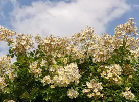 Der Begriff „ Kletterose“ fasst eine Gruppe kletternder, verschieden starkwachsender Rosen (Rosa sp.) oder Rosenhybriden, zusammen; teilweise werden auch die rankend kletternden „Ramblerrosen“ in diese Gruppe inbegriffen. Kletterrosen besitzen meist grosse Blüten und blühen meist öfter im Jahr; je nach Art und Sorte in Weiss, Gelb, Orange, Rosa oder Rot. Die Sorten unterscheiden sich ebenfalls in Blütenform und Blütenfüllung. Sorten mit gefüllten Blüten sollten vermieden werden, denn sie bieten in der Regel keine Nahrung für Insekten: die Staubblätter sind meist zurückgebildet, liefern daher keinen Pollen, und die nektarproduzierenden Organe sind unzugänglich. Die Kletterrosen wachsen steif und aufrecht und eignen sich zum Begrünen von Wänden, Mauern und Rankgerüsten. Kletterrosen besitzen weniger, aber dickere und steifere Triebe als Ramblerrosen und neigen dazu über die Jahre kahl zu werden, so dass überalterte und kranke Triebe sowie dürres Holz herausgeschnitten werden sollte. Kletterrosen sind weniger wuchsstark als Ramblerrosen. Rosenblüten und Hagebutten können gegessen oder beispielweise zu Konfitüre verarbeitet werden.